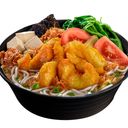 Spicy noodle soup with seafood, herbs, and a tangy broth, perfect for warming up.