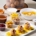 Perfect for a personal treat or shared. 15 to 18 poori balls topped with many condiments and ingredients. Party in your mouth.