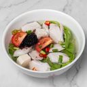 Tasty seafood soup mixed with fresh prawns, fish & sotong