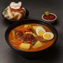 Soft rice cakes in rich, fragrant coconut broth with vegetables, tofu, egg, our signature Hae Bee Hiam ( Udang Kering ), finished with crunchy kerupuk.