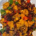 Crispy chicken stir-fried with chili peppers and aromatic spices for a flavorful kick.