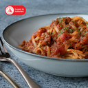 Rich plant-based bolognese sauce meets tender eggplant, topped with parmesan cheese.