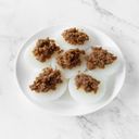 Steamed rice cakes topped with preserved radish, served in a set of six pieces.