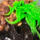 A sweet, chewy dessert made from sea coconut and syrup, often enjoyed chilled.