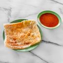 Crispy, flaky flatbread served with a side of savory curry for dipping and savoring.