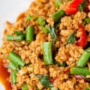 The ever popular Thai stir-fried dish. Minced pork cooked with hot basil, garlic and thai chili.
