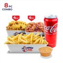 8 Boneless (1 Flav), 8 Original wings (1 Flav), 2 Large Curly Fries, 2 Large Fries 3 Dip