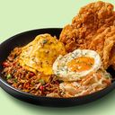 [Non-Spicy] Crispy, golden chicken cutlet served on a bed of aromatic Malay flavored fried rice