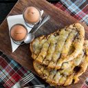 Vegemite spread, buttered sourdough, melted cheese & duo onsen eggs