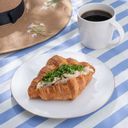 Chicken ham and gruyere cheese sit between a perfectly flaky croissant. A delicious breakfast staple..