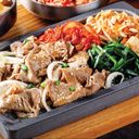 Get the best of both worlds with our juicy Korean-style beef patty paired with a slab of thick cut, gochujang marinated Pork Loin. Hamburg 100g 1pc + Pork Loin Chop (Deungshim) Steak Hotstone Steak Cut serves with rice