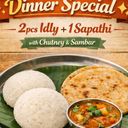 0Tamilnadu foods (2 idli and 1 chapati with samovar dinner menu)
