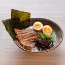 Original ramen with 3 pcs chashu, black fungus, halfboil egg & seaweed