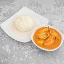 A flavorful dish featuring tender chicken in rich curry served with fragrant rice.