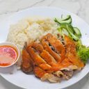 Savory grilled chicken served over fragrant Indonesian fried rice, bursting with bold flavors and spices.