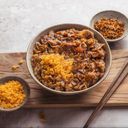 Japanese Pearl Rice with Japanese curry, tempura crumbs and pickles