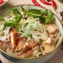 Nder and rich broth with spices Served with rice noodles, banana ham, no beef protein and stir fried mushroom topped with spring onions, mixed herbs Cooked with Onion