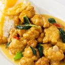 Crispy fish fillets glazed in tangy sweet & sour sauce, served with rice.