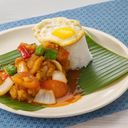Juicy chicken in savory Spicy and sweet Thai sauce, served with fragrant rice, fried egg.