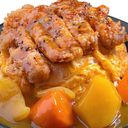 Cooked in a thick, umami curry sauce, topped off with fluffy omelettes & tender chicken