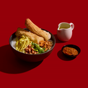 Rice Bowl with Ayam Gulai served with Baby Kai Lan, Emping Crackers and a side of Tofu Curry.