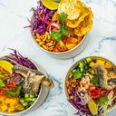 Fresh tuna, cherry tomato, pineapple, red cabbage, japanes cucumber, furikake, tobiko & crispy fish skin