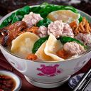 Hand torn noodles in delicious broth with Minced Pork, Braised Mushroom, Ikan Bilis, Onsen Egg, Vegetable, Fried Shallots.