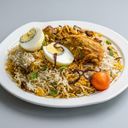 Tender lamb shank slow-cooked with fragrant spices and basmati rice, a savory and satisfying dish.