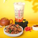 Golden Chrysanthemum Tea or Milk Tea infused with moringa, offering a light floral aroma and refreshing finish Paired with your choice of Brown Sugar QQ or Fungus Goji Jelly for a chewy touch, and perfect your meal with choice of Taimei Signature Chicken