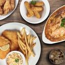 A crispy, golden-fried chicken katsu stacked with butter lettuce and cheddar cheese, sealed in a fluffy toasted UFO brioche bun. Served with a side of coleslaw and fries. A classic done galactically right.