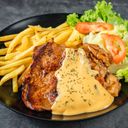 Grill chicken chop served with selection of 2 sides, choice of blackpepper, mushroom and teriyaki sauce