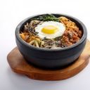 "One-bowl wonder! Assorted vegetables, bulgogi beef and sunny side up egg. Plonk in as much or as little sauce and plunge your spoon in to give it a really good mix, it gets better with every mouthful!"
