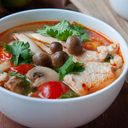 Spicy and tangy Thai chicken soup with aromatic herbs and a hint of lemongrass.