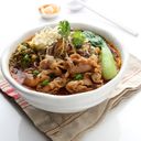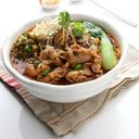 Tender beef slices poached in flavorful broth served over steamed rice.