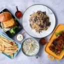 Sauteed mushroom aglio olio, classic wagyu beef burger, bbq chicken, mushroom soup, thick cut fries with truffle mayo dip