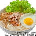 A Singaporean favourite. Thick, handmade egg noodles in a soup, cooked with minced pork, baby bok choy, eggs, spring onion, and anchovies.