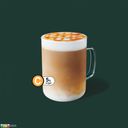 Freshly steamed milk with vanilla-flavored syrup is marked with espresso and topped with caramel drizzle for an oh-so-sweet finish..