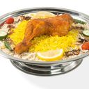 Hearty platter featuring half chicken and tender mutton served over a bed of aromatic basmati rice, infused with traditional Yemeni mandi spices like saffron, cardamom, and cloves, perfect for meat lovers who want the best of both worlds.