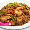 Savory stir-fried rice noodles with fresh vegetables and succulent seafood, bursting with umami flavors.