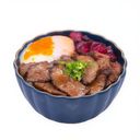 Tender Chicken thigh that has been marinated in a premium dark soy-dashi broth and topped with our house made truffle sauce. Served over a bed of Japanese rice and with an onsen egg.