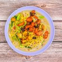 A dish comprising of thick yellow noodles and rice vermicelli noodles fried in a rich prawn and pork stock, served with our amazing sambal on the side