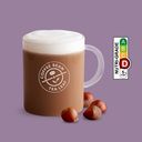 Freshly pulled shots of espresso with our hazelnut powder and non-fat milk