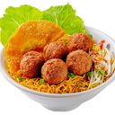 Artisanal noodle dish with handmade meatballs