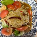 Iconic Thai salad consisting of fresh papaya, tangy lime, spicy chilies, juicy tomatoes & savory plara