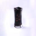 Refreshing grass jelly topped with sweet syrup and chewy pearls, a delightful treat for all.