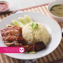 Crispy and savoury roasted chicken served with fragrant and fluffy chicken rice