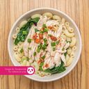 Tender shredded chicken in a savory broth with al dente macaroni noodles, a comforting delight.