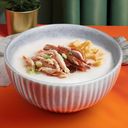 Very small serving size but so expensive. Soya chicken and duck congee only one piece of each meat, shredded meat and century egg same.Might as well just be plain congee. Don’t buy here