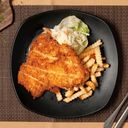 Crispy and well seasoned boneless chicken cutlet paired with fluffy and golden fried rice