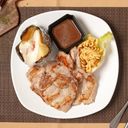 Tender slices of fish served over fluffy rice, bursting with savory flavors and delicate textures.